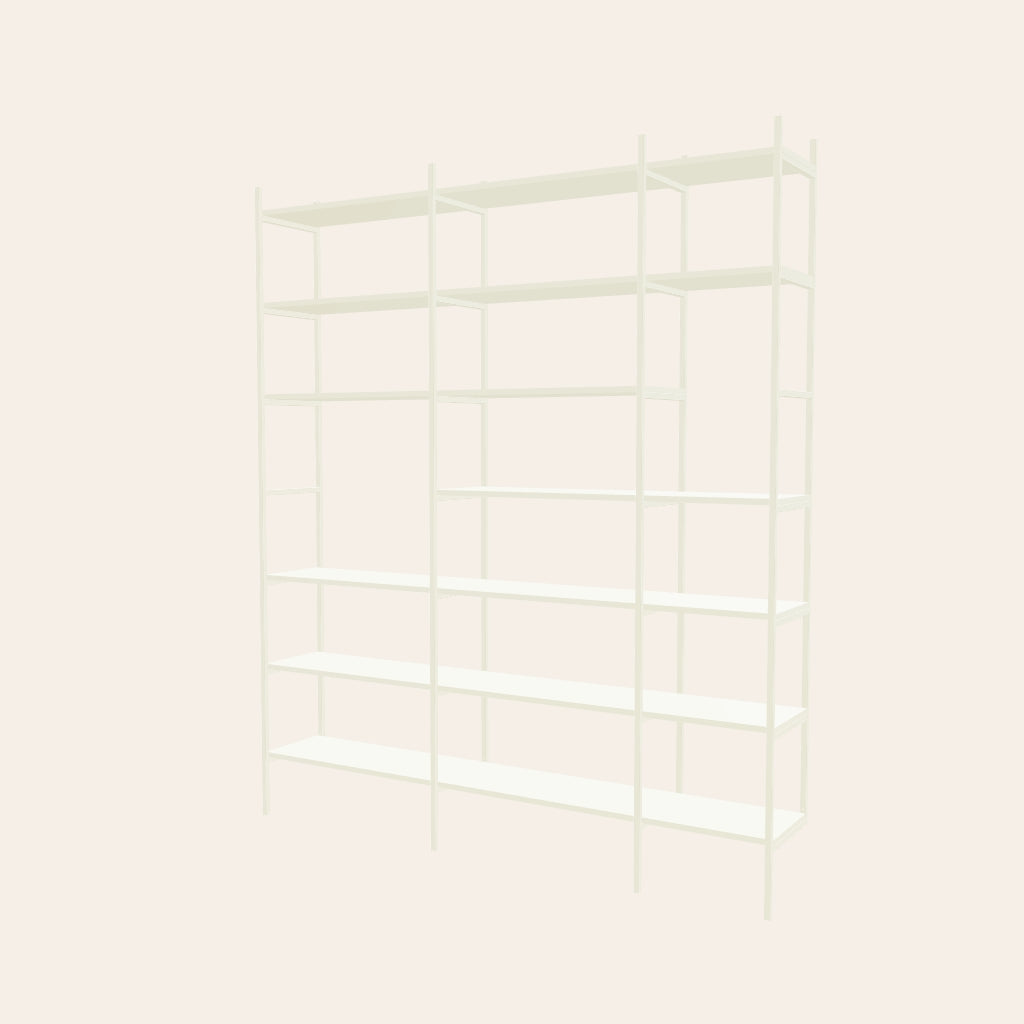 A perfect bookshelf for your living room in the color off-white. In the open sections you can fit a painting or a large lamp. This combination is 201 cm wide.