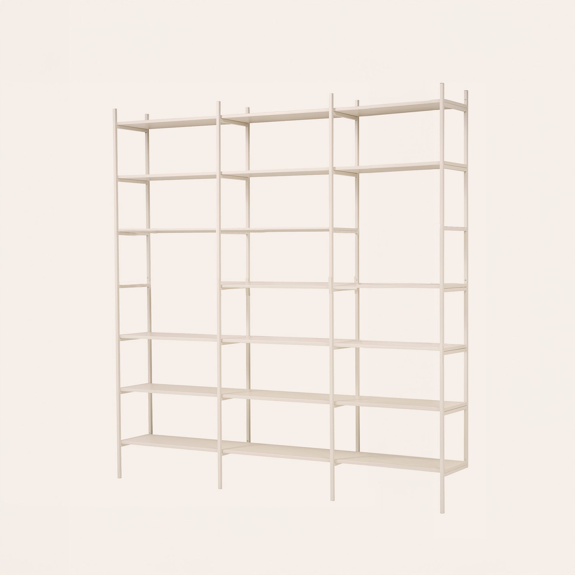 A perfect bookshelf for your living room in the color white. In the open sections you can fit a painting or a large lamp. This combination is 236 cm wide.