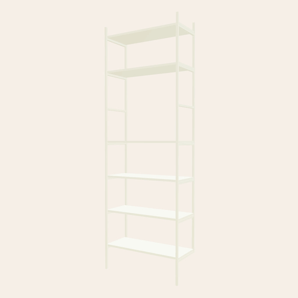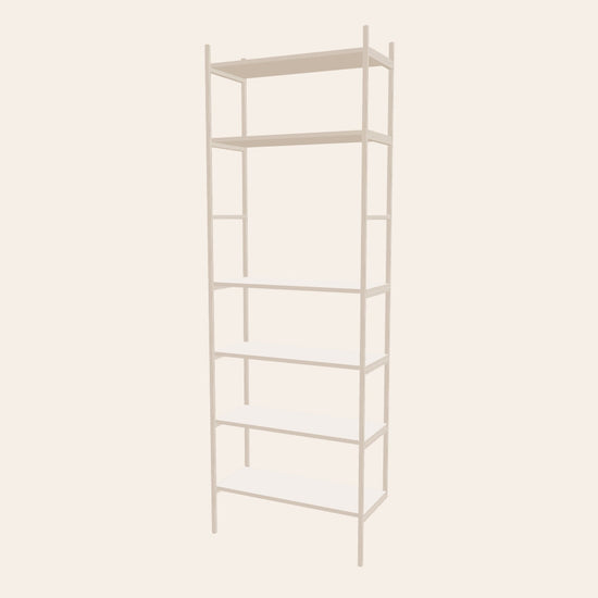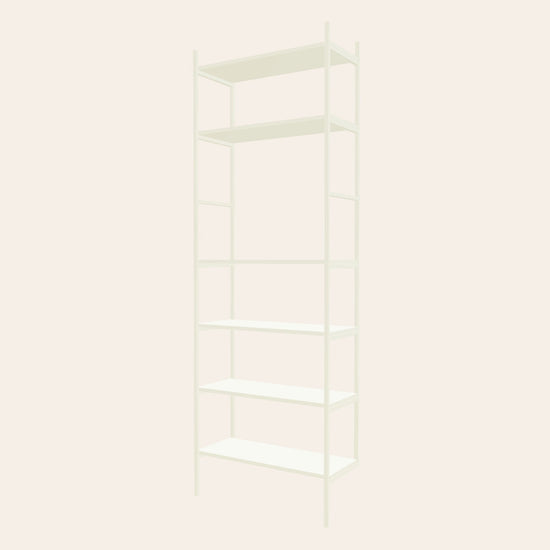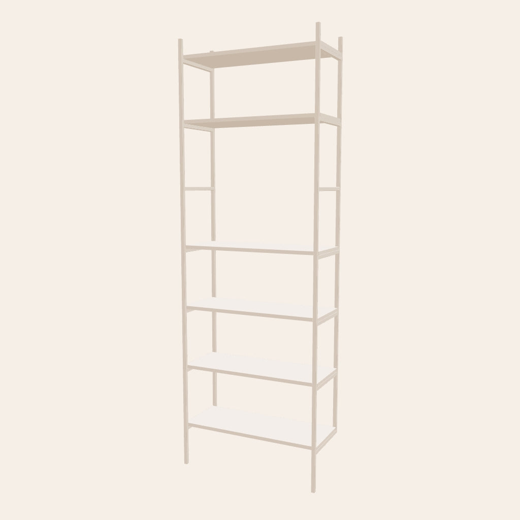 A perfect bookshelf for your living room in the color off-white. In the open sections you can fit a painting or a large lamp. This combination is 80 cm wide.
