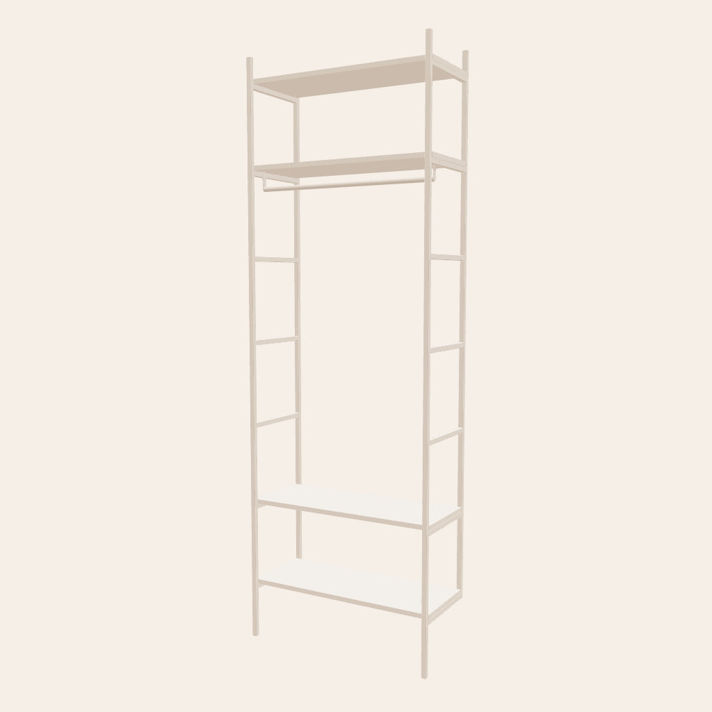 A stylish hallway shelf in off-white for order and elegance in your entrance. With a clothing rack for hooks and hangers, shelves for shoes, and space for everything else that needs a home in your hallway. Practical, airy and beautiful. This combination is 80 cm wide.