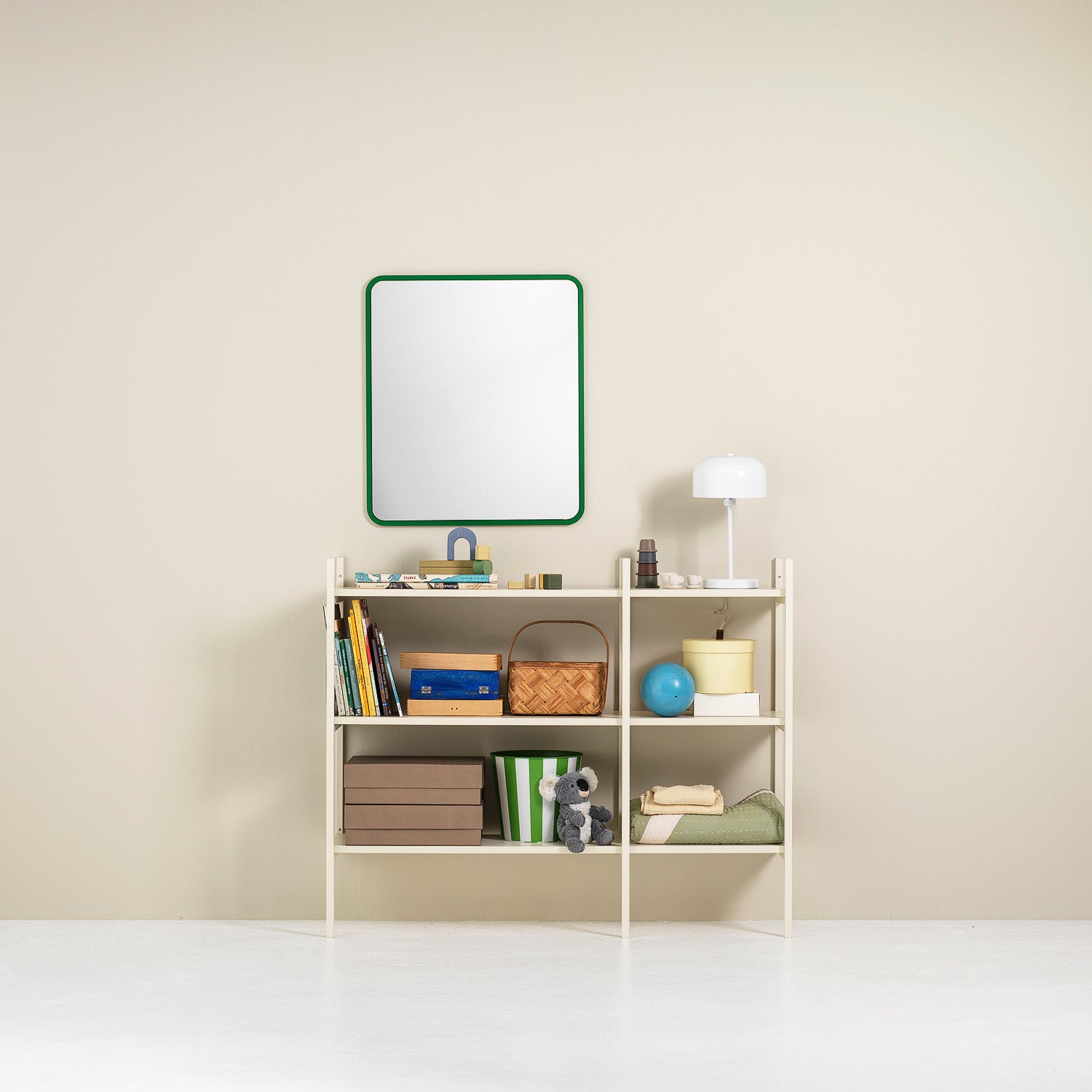 Kleines Bücherregal oder Sideboard in Off-White passt in jeden Raum Ihres Zuhauses. Die niedrige Höhe eignet sich perfekt für eine Lampe, ein Stillleben oder einen Stapel Kunstbücher. Dieses Regal ist 123 cm breit.