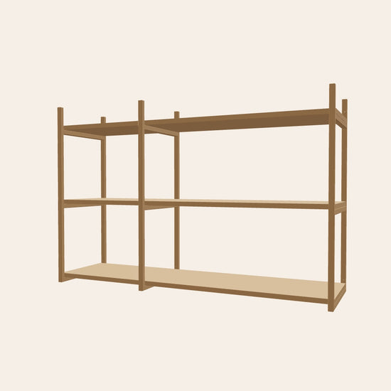 Vägghängd öppen hylla i färgen kamel, perfekt för kök, vardagsrum eller barnrum. Komplettera med en klädstång för att hänga upp allt från köksredskap till kläder, en lekfull lösning för praktisk förvaring. Denna kombination är 123 cm bred.