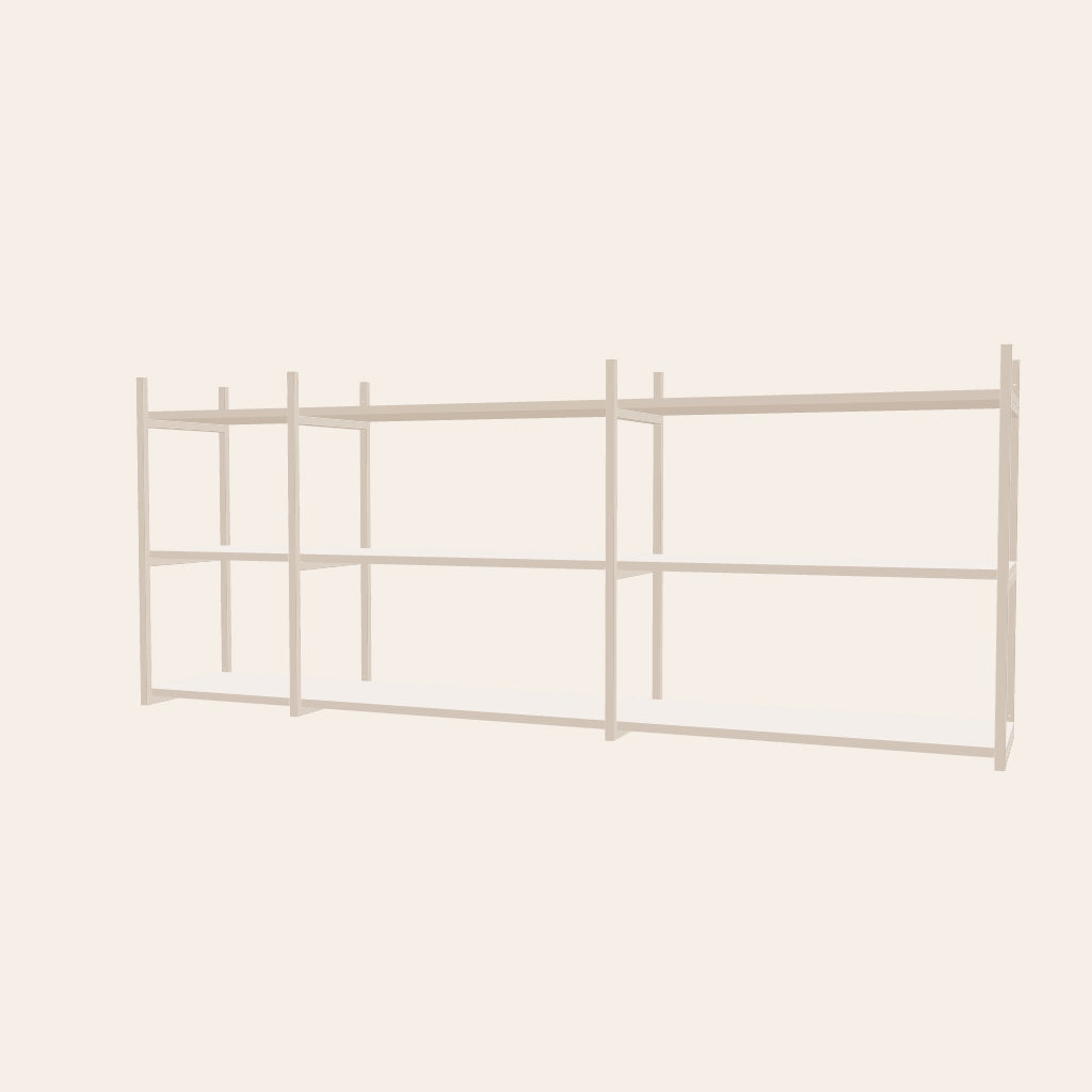 Vägghängd öppen hylla i färgen off-white, perfekt för kök, vardagsrum eller barnrum. Komplettera med en klädstång för att hänga upp allt från köksredskap till kläder, en lekfull lösning för praktisk förvaring. Denna kombination är 201 cm bred.